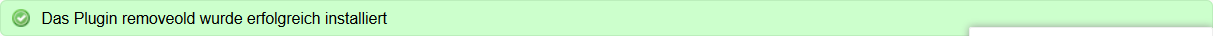 Klicken Sie dann auf Installieren. Nach einem kurzen Moment sollte ein grüner Banner erscheinen, der Ihnen die Meldung Das Plugin removeold wurde erfolgreich installiert meldet: