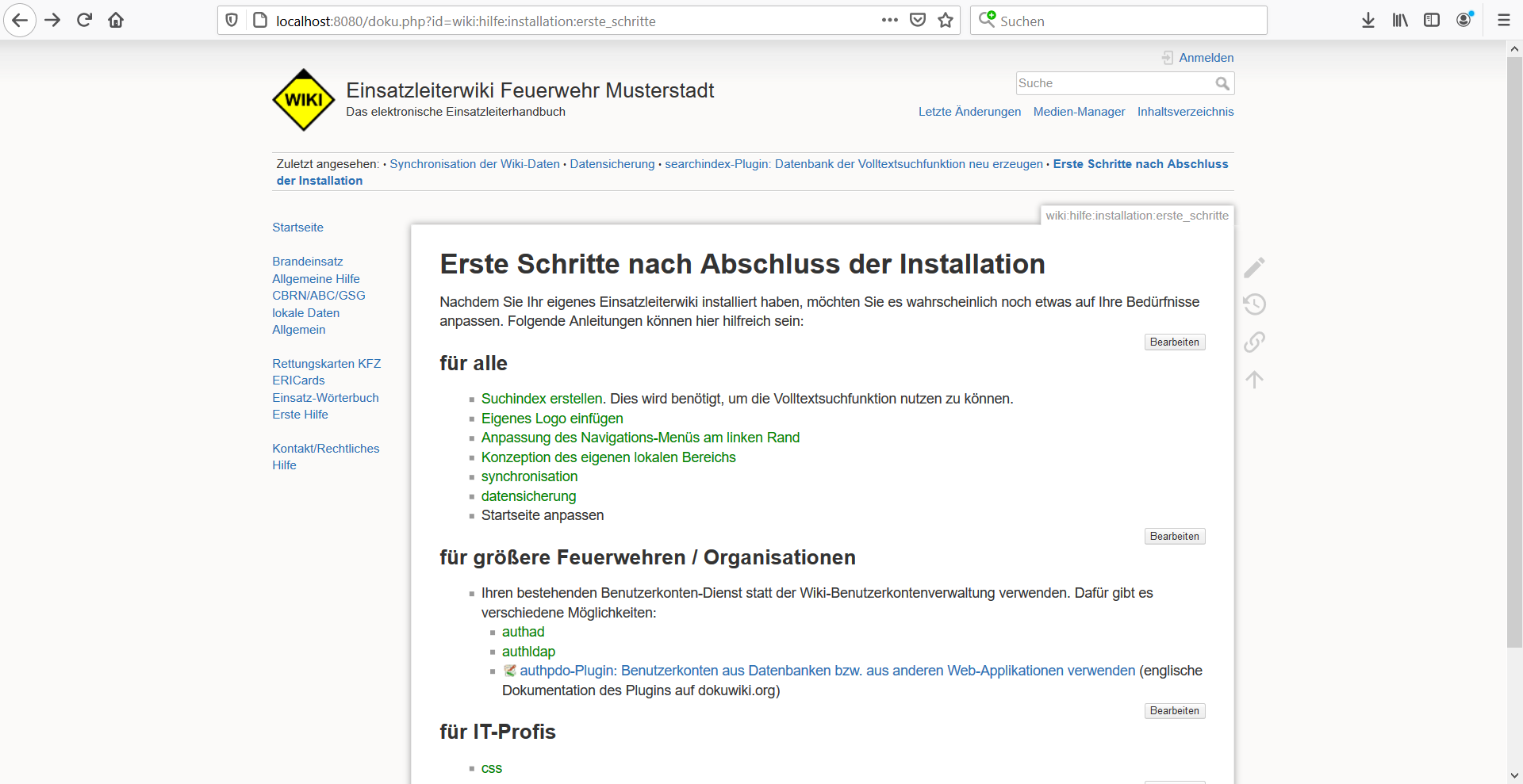 Es muss zuerst der Webserver und dann das Einsatzleiterwiki installiert werden.